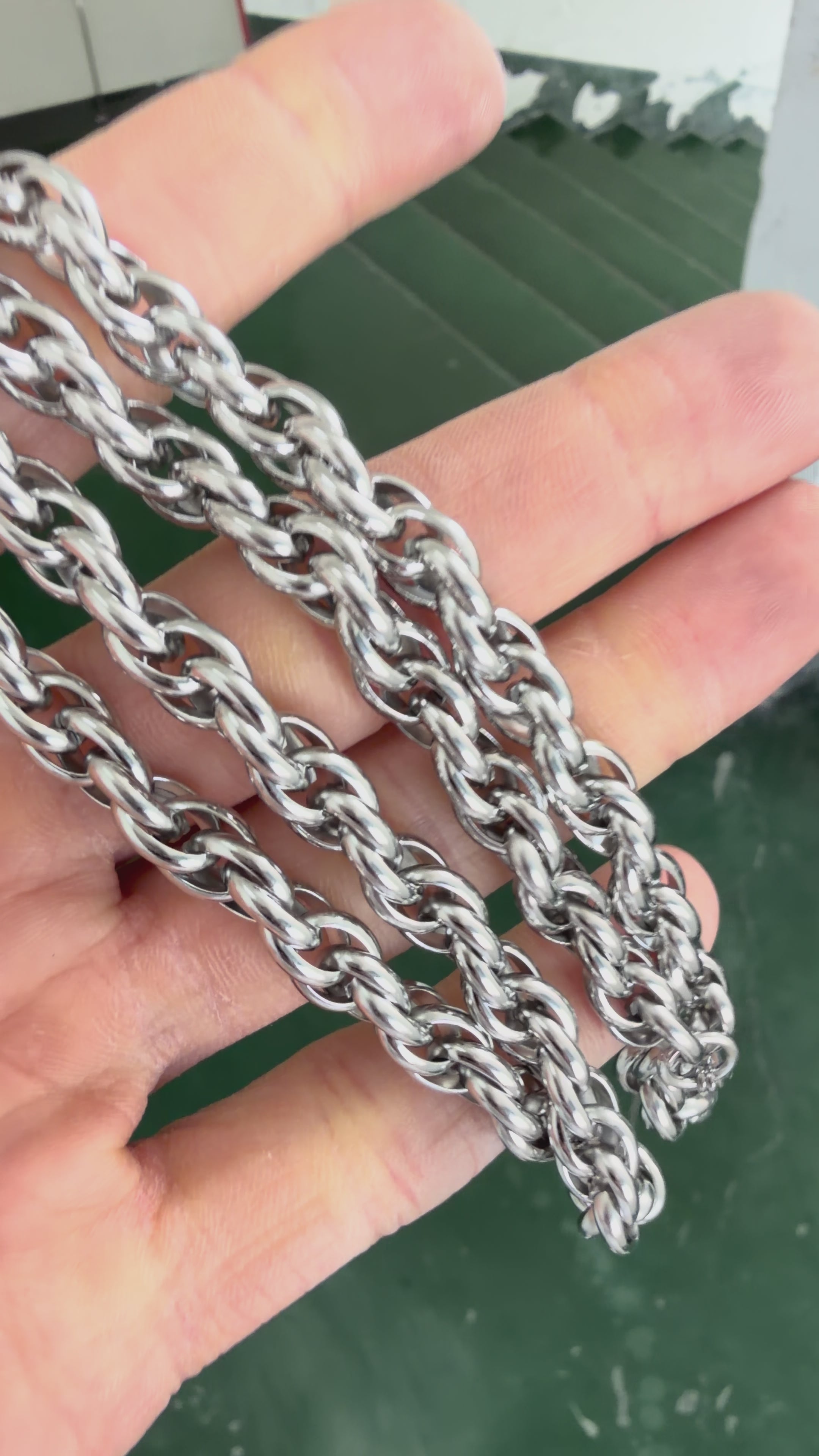Chain Supplyy chains are made from either 304 or 316L surgical stainless steel—the same grade used in medical implants and offshore rigs. Stainless does not tarnish like silver or gold plating. It resists corrosion from water, sweat, and daily wear.
